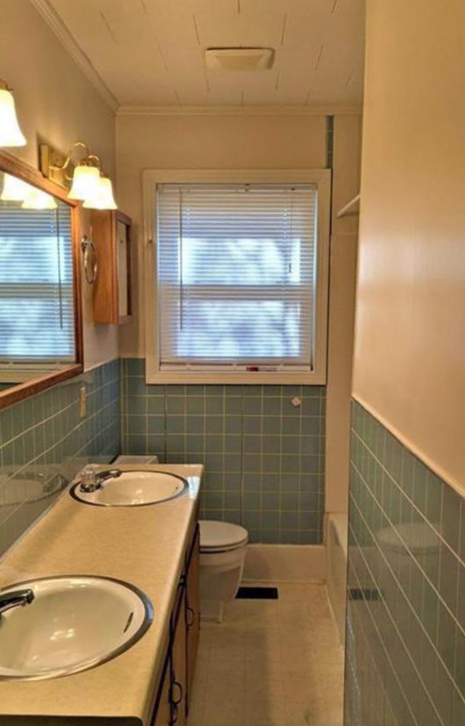 It’s our main bathroom and also one of the smallest bathrooms we ever had 😂. Being first-time homeowners, we just didn’t have the budget to completely gut and remodel everything.