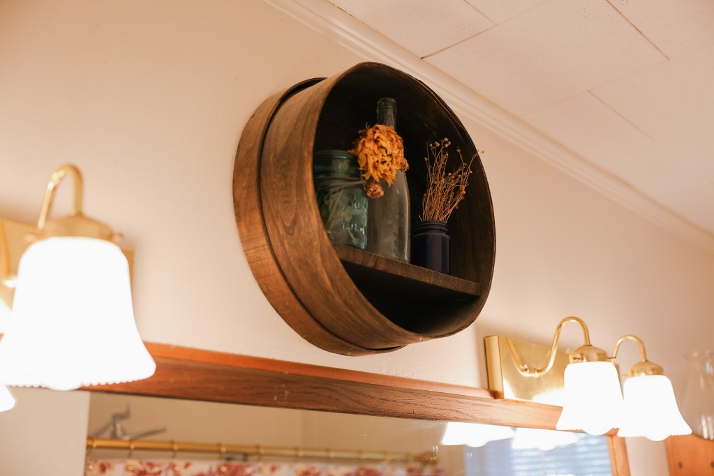 The shelf above the toilet was actually a Goodwill find, and I love how it adds both function and character.
